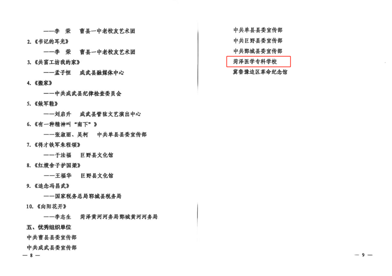 此次比赛,实现了我校在该项市级重要赛事上个人荣誉与集体荣誉的“双突破”,是我校持续深化红色文化教育、落实大中小学思政课一体化建设的显著成果,也必将激励全校师生继续深挖红色资源,讲好红色故事,赓续红色血脉,为培养担当民族复兴大任的时代新人、服务地方发展贡献更多菏医力量。(宣传部)