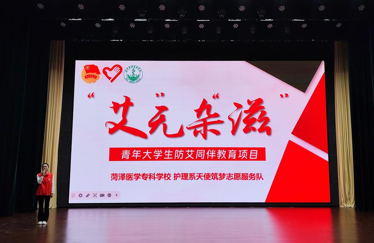 11月28日上午,在第38个“世界艾滋病日”到来之际,由菏泽市卫生健康委员会、菏泽市疾病预防控制中心主办,菏泽市传染病医院和我校承办的“2025年世界艾滋病日主题宣传活动暨校园防艾同伴教育项目推广启动仪式”在泰山路校区报告厅举行。