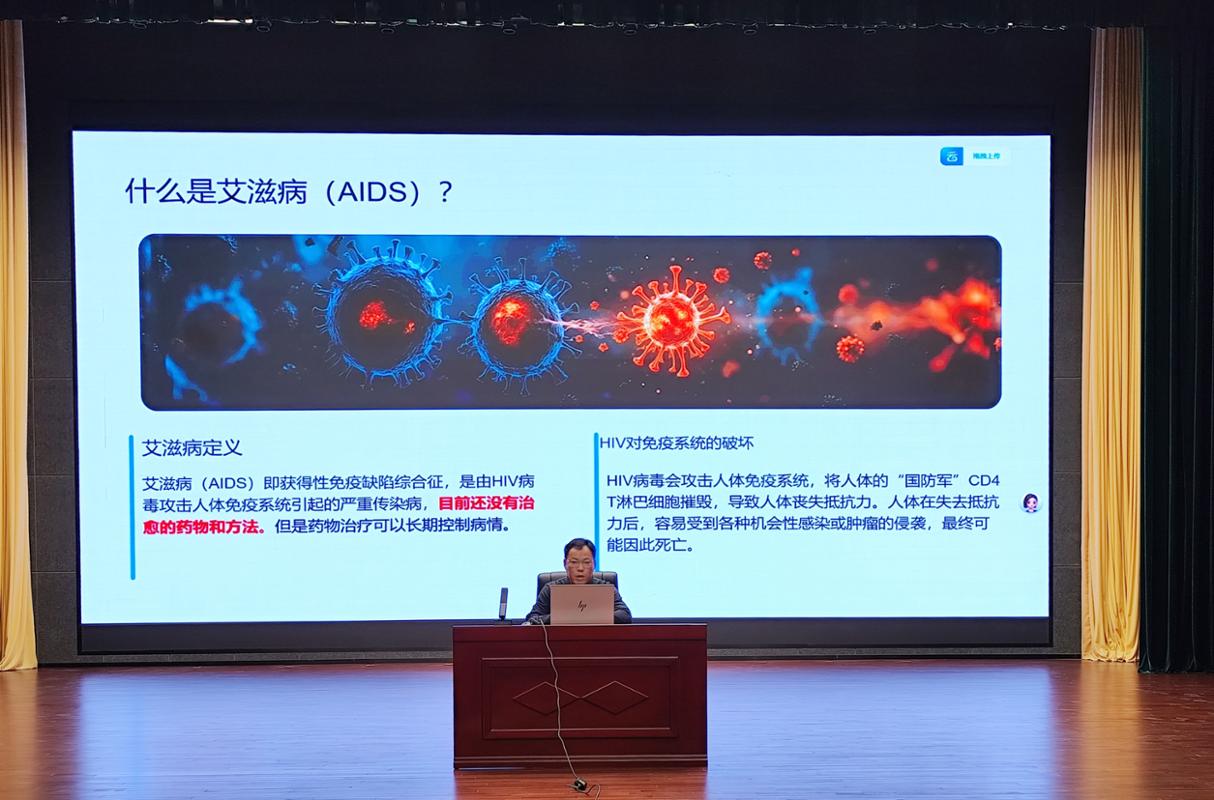 刘金标为同学们带来了一场专业、系统的艾滋病防治知识讲座。他结合丰富的临床案例,深入浅出地讲解了艾滋病的传播途径、流行现状、预防措施、暴露后处理以及反歧视知识等重要内容。他特别强调了“检测是知晓艾滋病感染状况的唯一途径”,并详细介绍了正确的检测方法和求助渠道,引导同学们树立“自身健康第一责任人”的意识,科学防艾,消除恐惧与歧视。