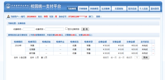 图3-1学费缴费页面