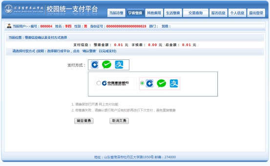 菏泽医学专科学校统一支付平台缴费说明