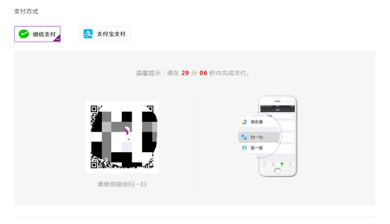 选择支付方式,如图3-5所示,选择微信支付或支付宝支付进行扫码支付