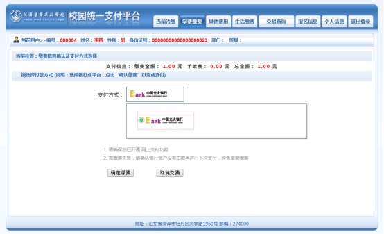 通过网银或账号缴费时,请确认单位名称:菏泽医学专科学校;