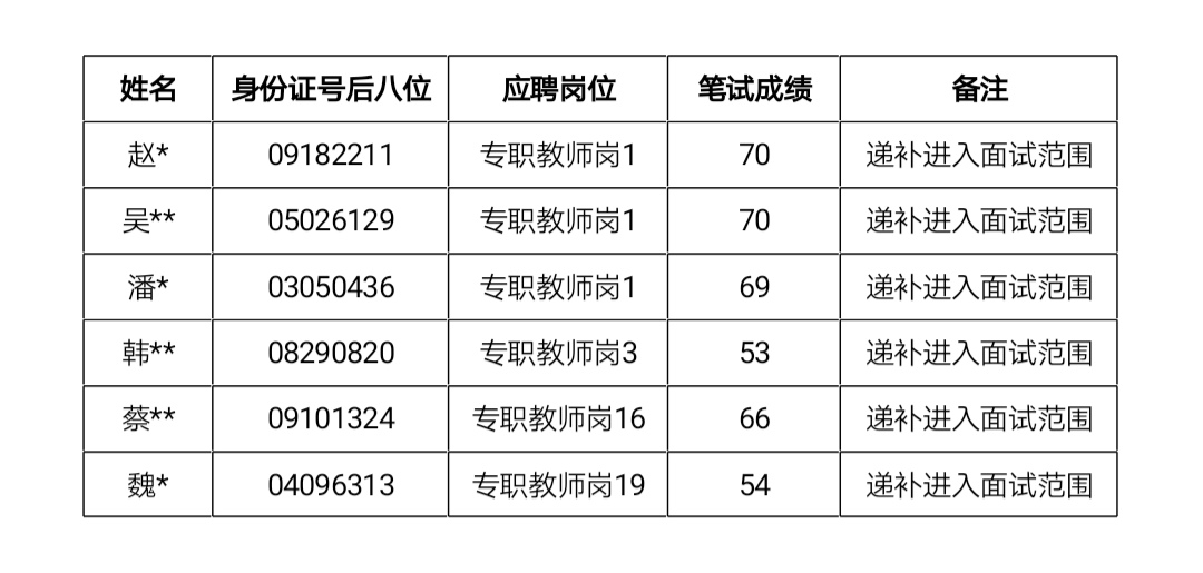 菏泽医学专科学校2022年公开招聘递补进入面试范围人员名单