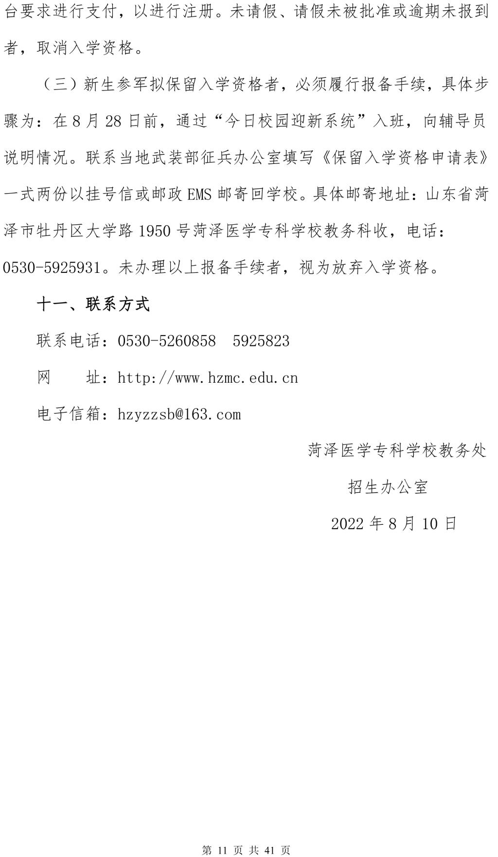 菏泽医学专科学校 地址:山东省菏泽市牡丹区泰山路5025号 邮编:274000